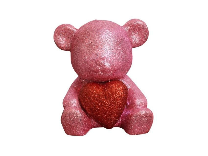 Dekoracija medo sa srcem 15cm; gliter; roza/crvena