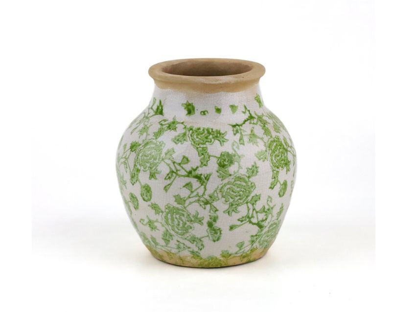 Keramička vaza h17 d16.5cm bijela sa zelenim cvjetovima