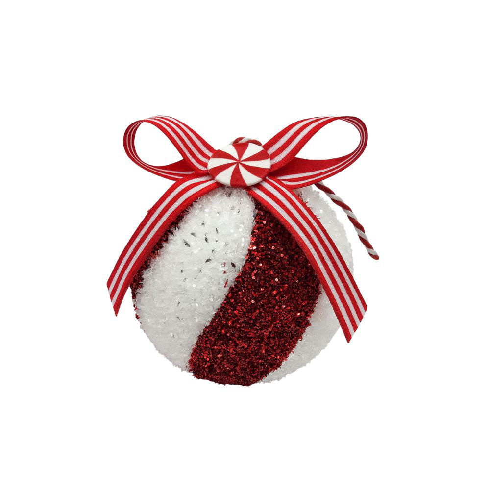 Kuglica dekorativna 8cm; s/3; crvena/bijela s dekoracijom