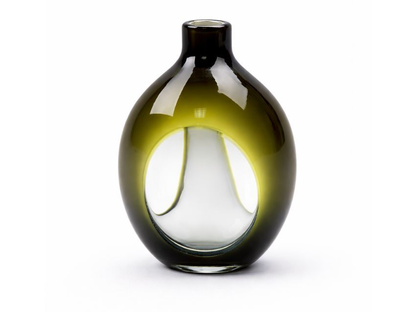 Vintage vaza staklo 16x16 h22cm; maslinasto zelena