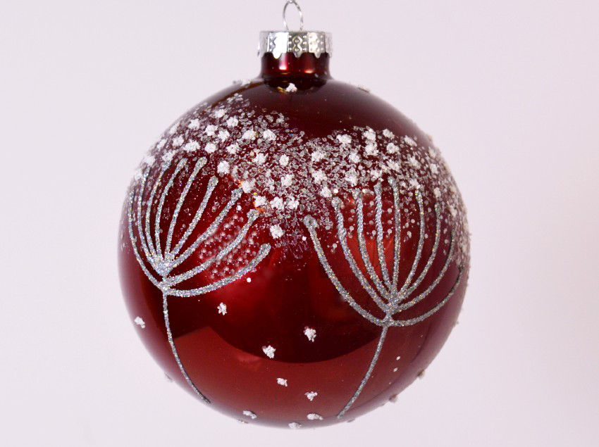 Četiri staklene božićne kuglice bordo boje. Izuzetna bordo boja s prekrasnim srebrenim šljokicama i