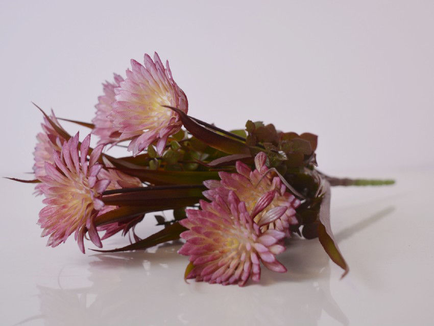Prekrasni umjetni buket koji se sastoji od realističnih cvjetova i listova. Idealan izbor za aranžmane od umjetnog cvijeća. Visoka kvaliteta izrade i dugotrajnost, glavne su odlike ovog prekrasnog umjetnog buketa.