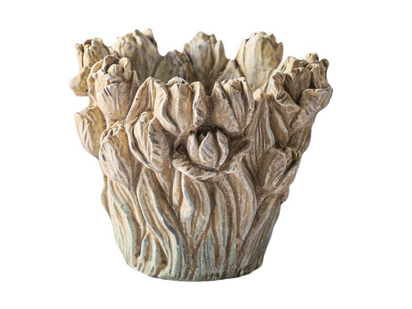 Cement posuda 21x18.7x16.5cm; uzorak tulipana