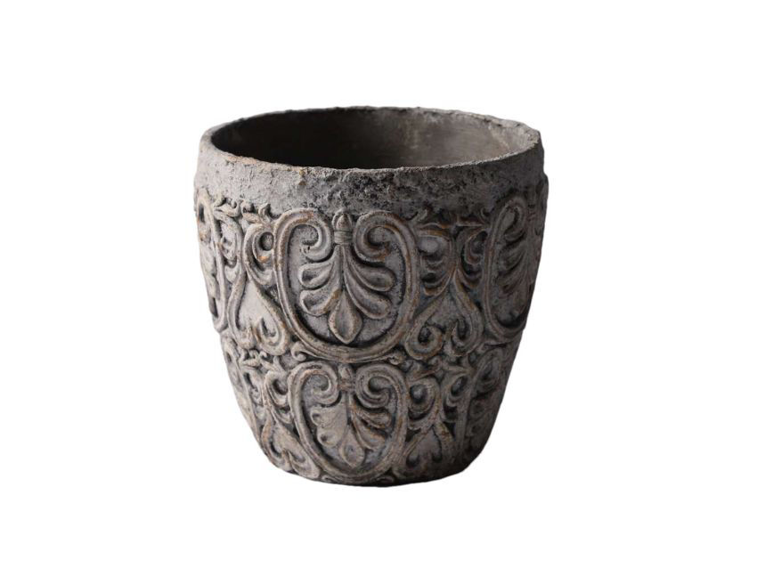 Cement posuda s reljefom 14.3x14.3x13cm;siva