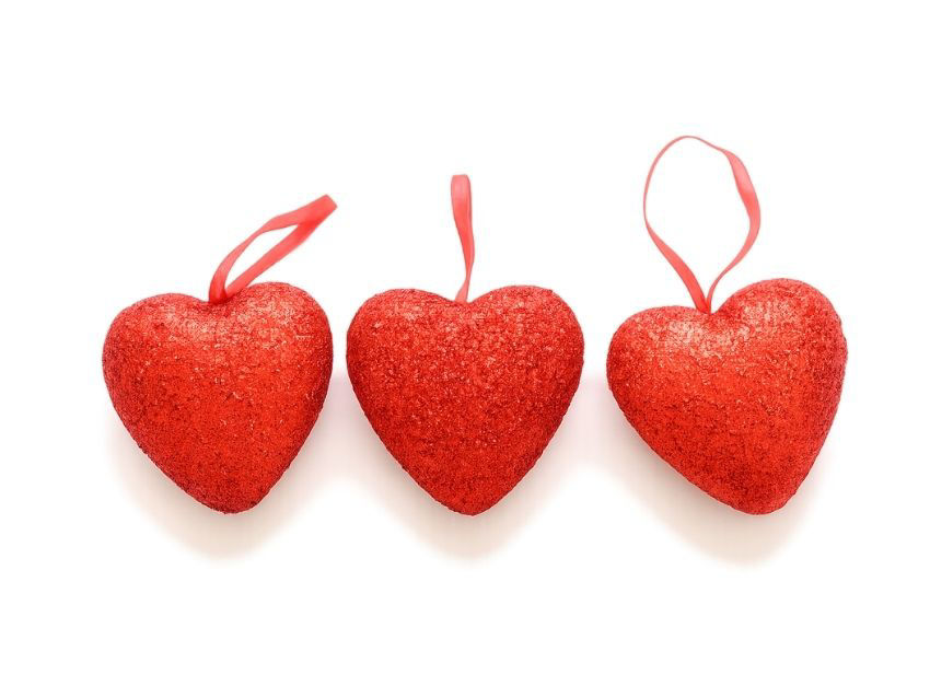Dekoracija srce 6cm. S/3; gliter; crvena