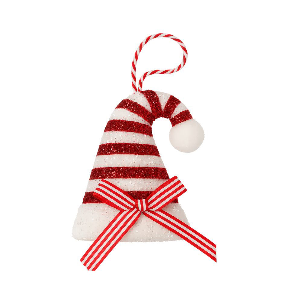 Dekoracija za bor kapa 12x9cm; bijela/crvena