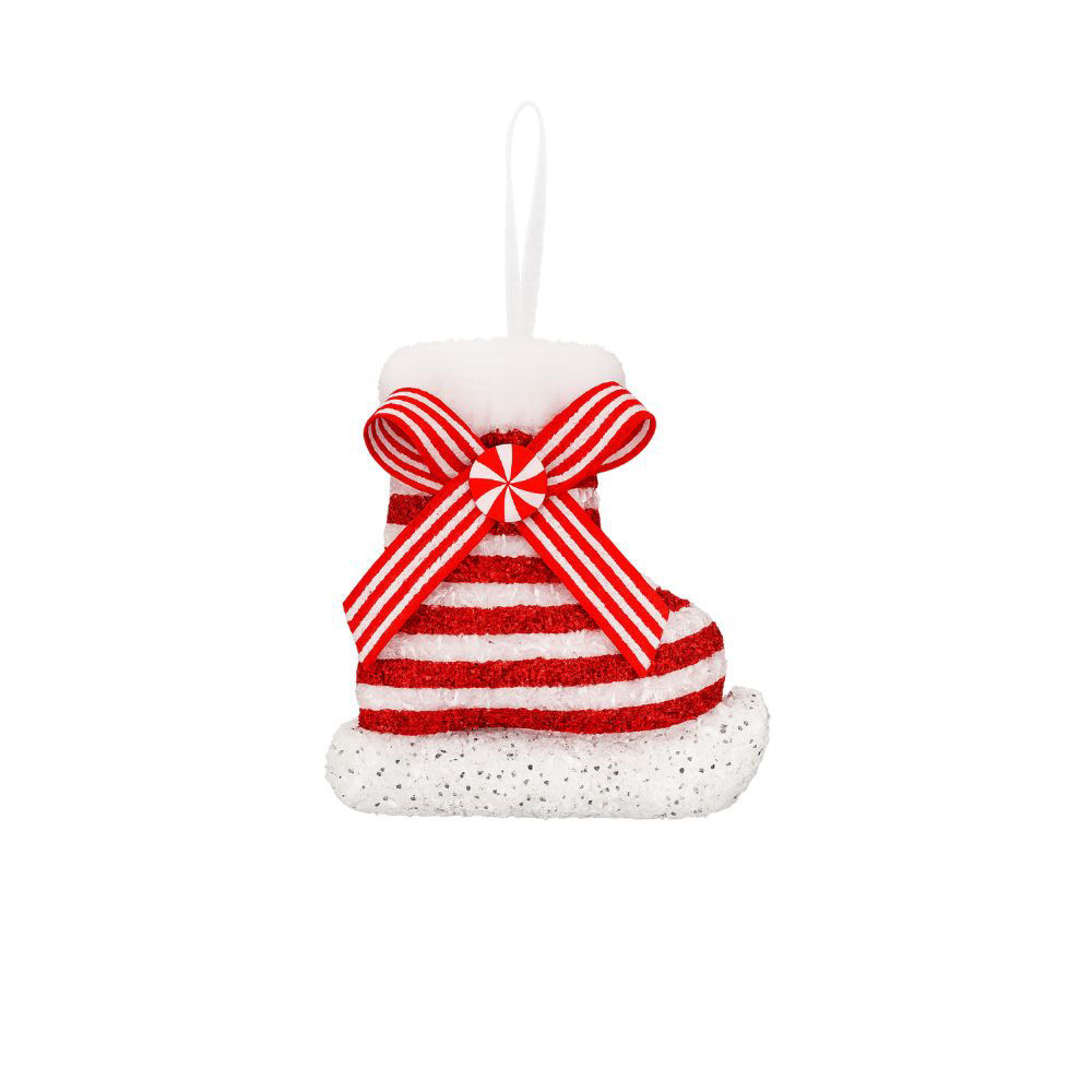 Dekoracija za bor klizaljka 11x11cm; bijela/crvena