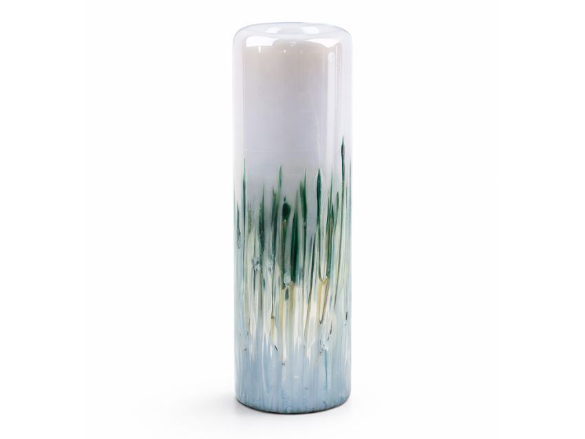 Dekorativna vaza staklo s reljefom 14x14 h39.5cm; bijela/zelena