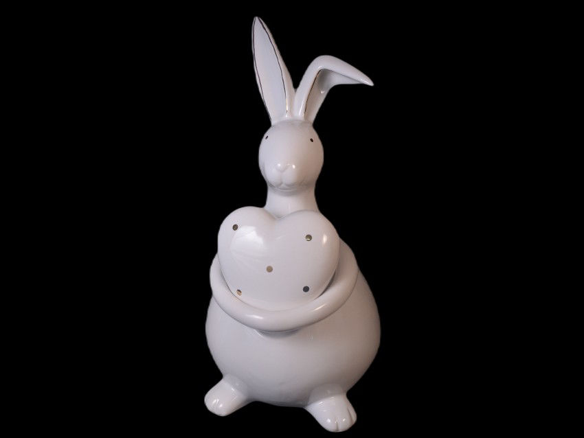 Dekorativni zec sa srcem; 19.7x16.6x3.5 cm; bijela/zl.točkice
