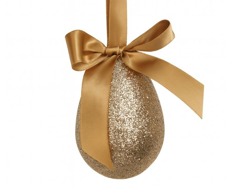 Jaje dekorativno sa satenskom mašnom 10cm; gliter ; platina
