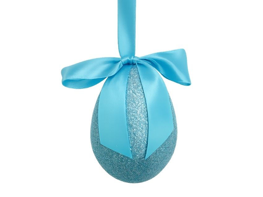 Jaje dekorativno sa satenskom mašnom 10cm; gliter ; plava