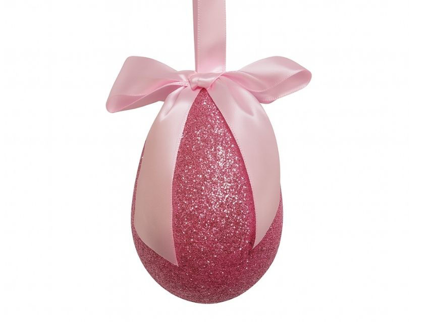 Jaje dekorativno sa satenskom mašnom 10cm; gliter ; roza