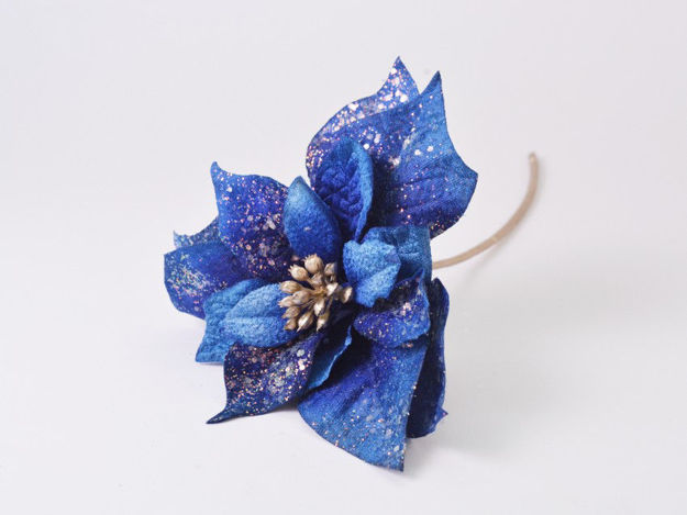 Pik baršunaste božićne zvijezde s gliterom 32cm/d20 cm; indigo plava bl-01