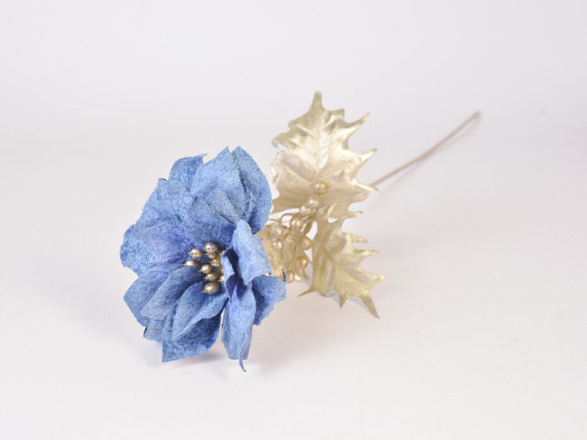 Pik baršunaste božićne zvijezde s gliterom 32cm/d20 cm; indigo plava bl-01