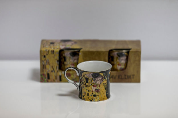 Uključene dvije šalice, koje dolaze u kutiji s uzorkom Gustav Klimt.