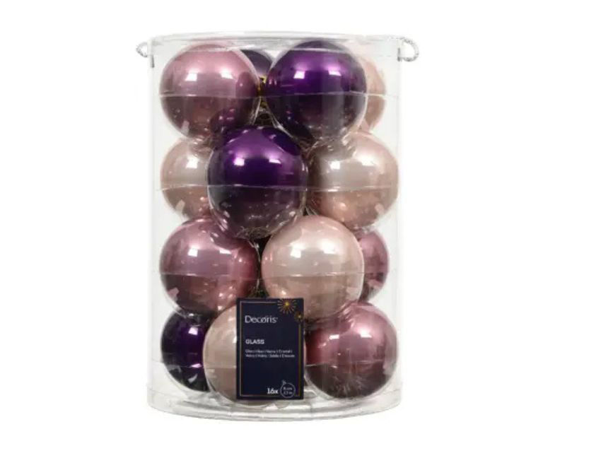 Staklene kuglice d8cm; s/16kom; roza/ljubičasta