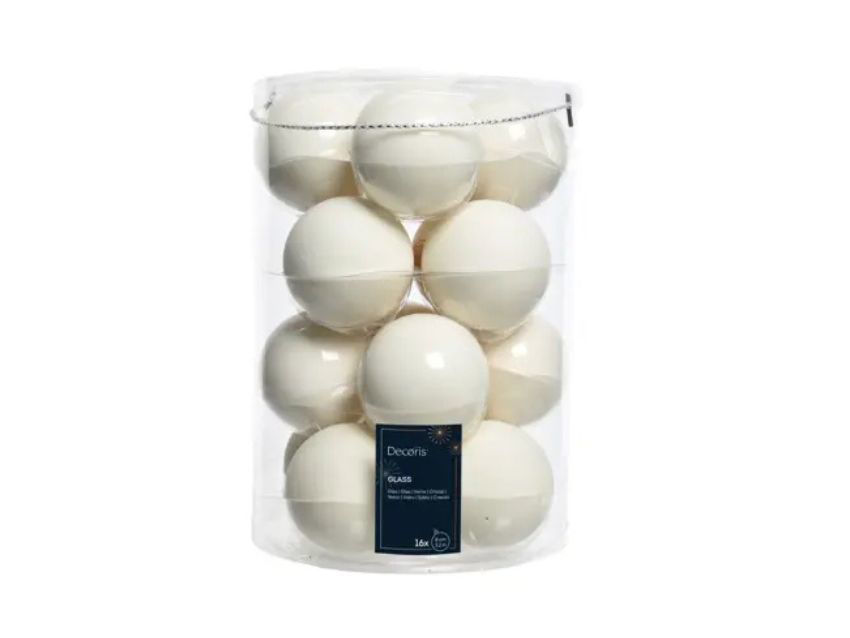 Staklene kuglice d8cm. S/16kom; vuneno bijela