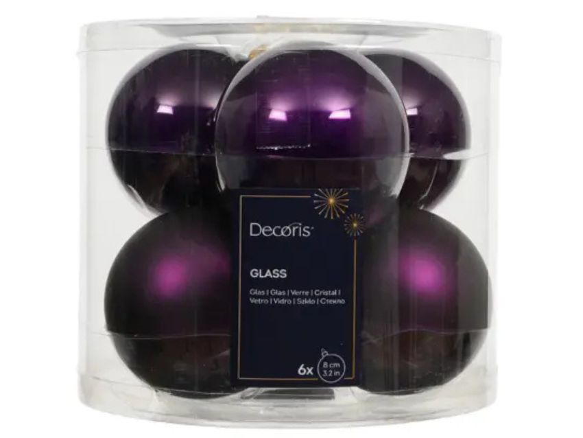 Staklene kuglice d8cm; s/6kom; mat ljubičasta