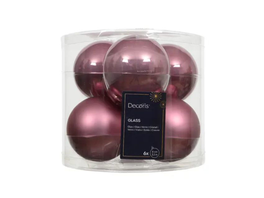 Staklene kuglice d8cm; s/6kom; vintage roza