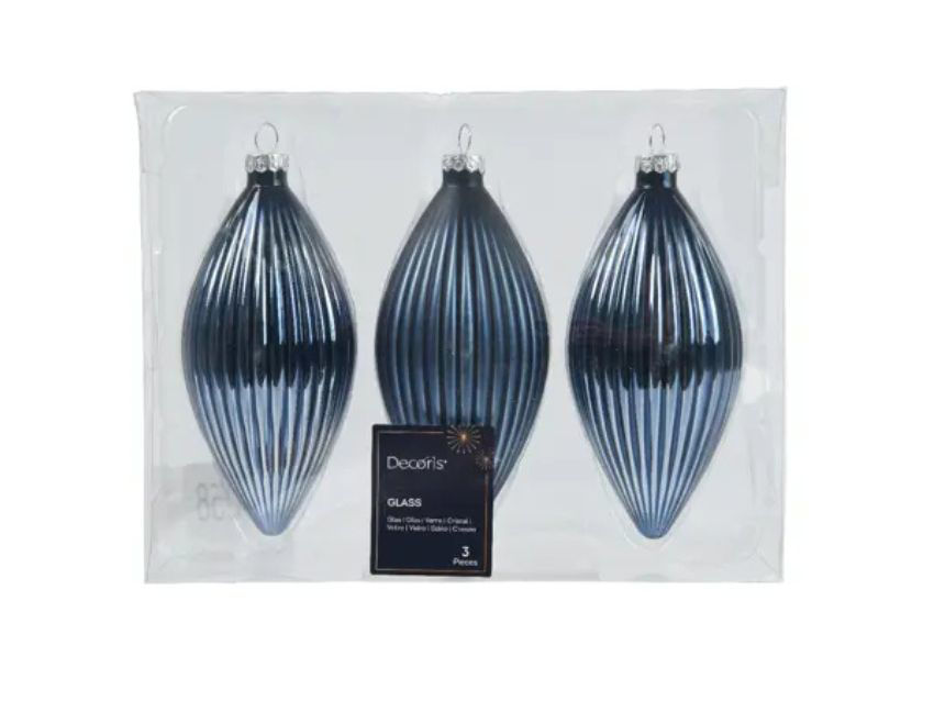 Stakleni ukras d6 h13cm; s/3; t.Plava