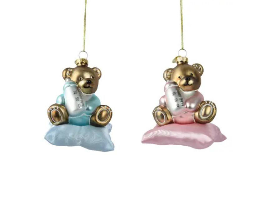 Stakleni ukras medo na jastuku 7.4x h8cm; ass.