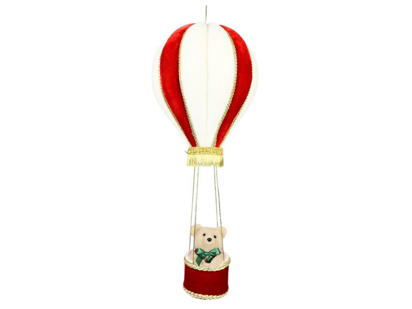 Ukras za bor medo u balonu 17xh48cm okrugla košara; crvena/bijela