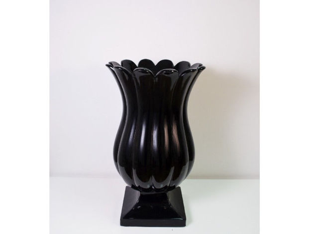 Prekrasna crna vaza od polyresina jako zanimljivog oblika te rebraste površine. Svojim linijama