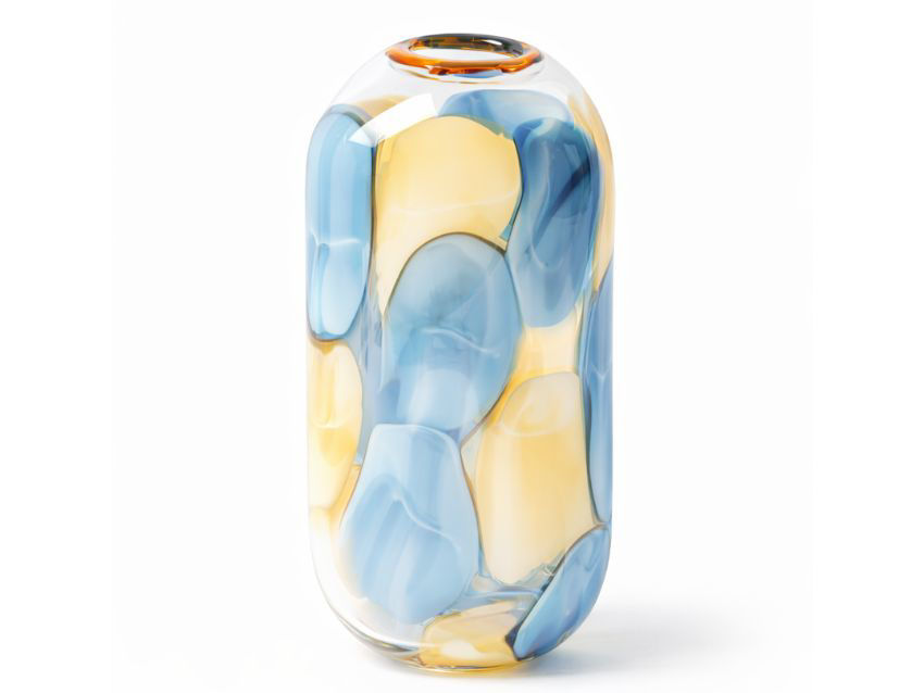 Vaza staklo 17.5x12.5 h32.5cm; plava/žuta
