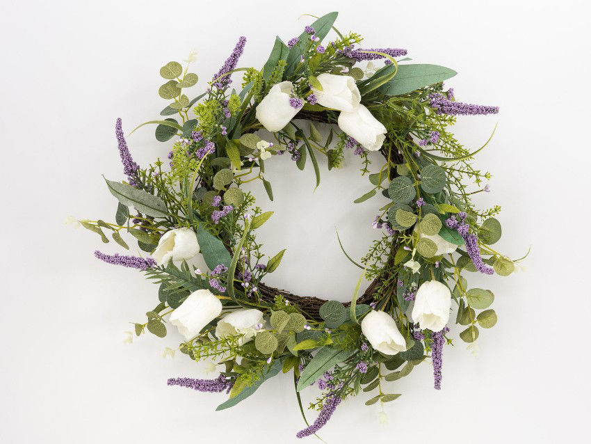 Vijenac sa tulipanima 56x56x14cm. bijela