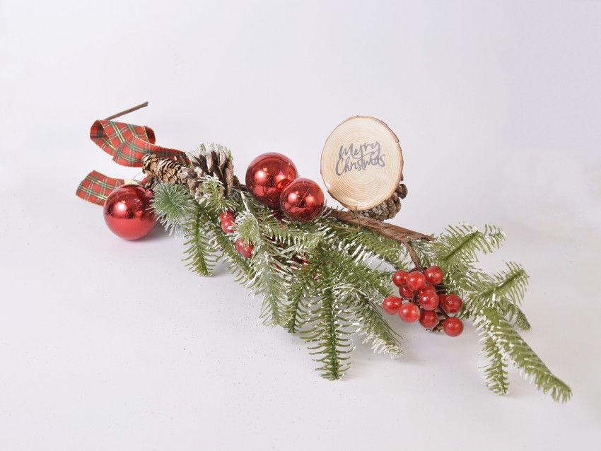 Viseća božićna dekoracija borovina s kuglicama i češerima 56 cm, zasnježena, crv